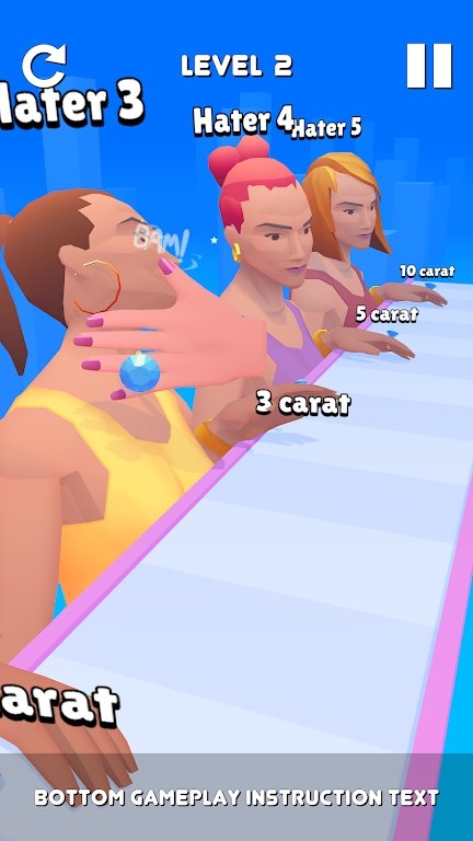 不同的钻戒跑酷的赛道可以去尝试,保证钻戒不要掉落各种陷阱之中。