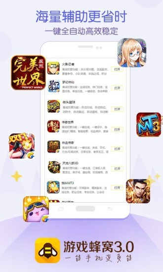 我们一直致力于让用户拥有更好更便捷的游戏体验,在全新的3.0版本中,游戏管理功能更全面,只需启动游戏蜂窝就自动匹配你手机里的游戏,一键启动游戏辅助功能让你告别繁琐的步骤,带你进入紧张刺激的游戏世界!
