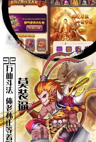 是一个神话题材的取经手游,让每一个玩家都能在这里,亲身来一场西游之行,在维护师父前行的路上,还需要对立各式各样的妖怪,你的任务还是蛮严重的。还有超级多的打怪副本,都需要你好好的完成,每一次赢得应战的时候,都能取得比较丰厚的奖励,并且提升你的等级。