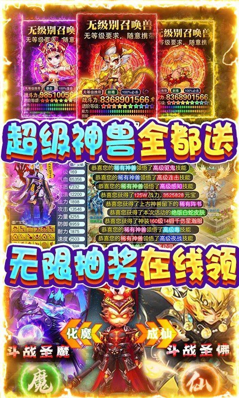 上线送全部神兽!秒天秒地秒空气!日常PK两不误!