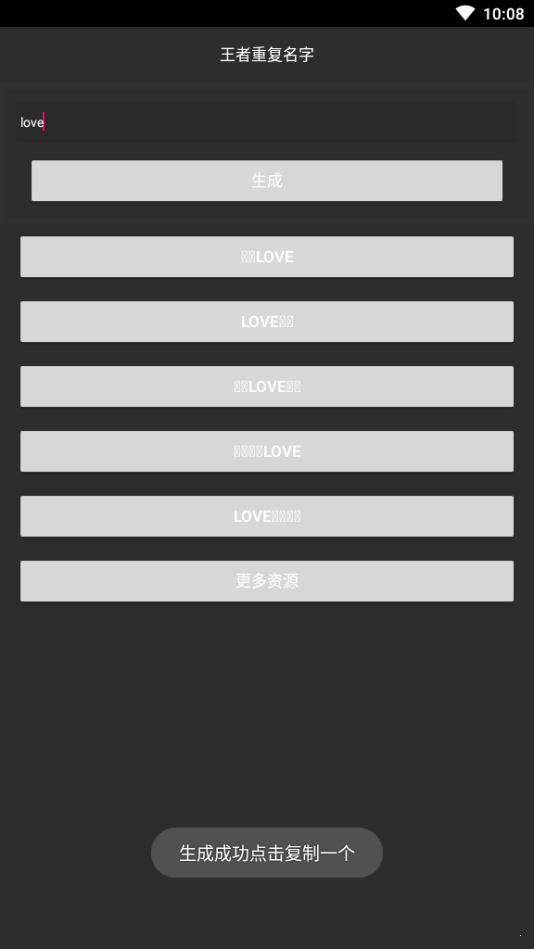 和平精英重复名生成器是一款可以帮助玩家生成重复名的软件,看起来平平无奇但却可以发挥巨大的作用,喜欢的名字用不了怎么办呢,当然是用和平精英重复名生成器去修改了,生成专属的代码然让你的名字从此别具一格,再也不用担心重复的问题了。