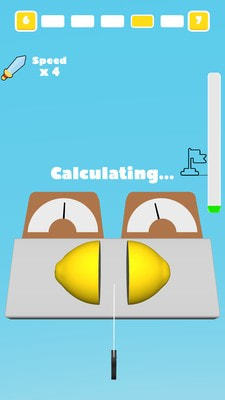 -将物体切成均匀的重量。为此,请等待刀片到达正确的位置。