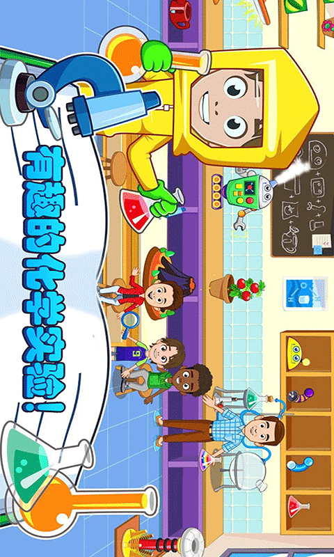 让您的孩子来我的小镇迷你校园中学习音乐,在这里可以学习音符和弹奏乐器,用钢琴和吉他演奏一些曲子或在架子鼓上制造一些噪音!在科学实验室里成为一个疯狂的科学家,不要错过前往学校操场的时间,那里的教练会教各种运动,比如网球、棒球、篮球甚至羽毛球!