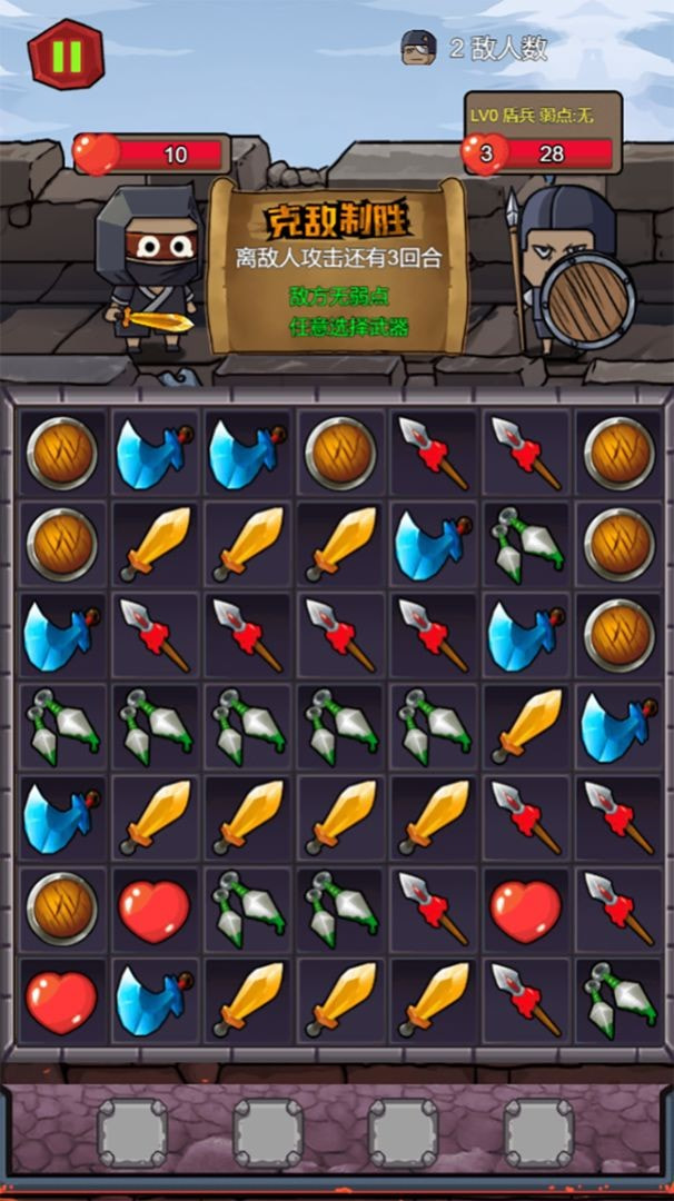 抱着尝试的心态去下载并试玩这款游戏,发现给我耳目一新的感觉,游戏中用消除类和攻防类相结合,用了我们传统的冷兵器结合,加上里面爆笑的对话,要记得敌人的弱点哟!