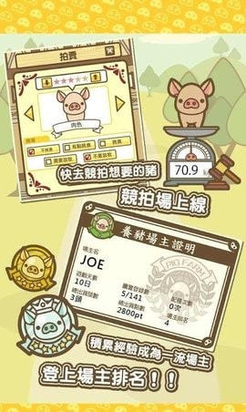 1上升场主等级来饲养更稀有的猪,出货越多的猪,养猪场场主等级就会越高;最初只能进货稀有度低的猪,升级后就能进货更稀有的猪了;稀有猪的养成会很辛苦,但是养大的话价格也随之升高;多多出货,快快升级;