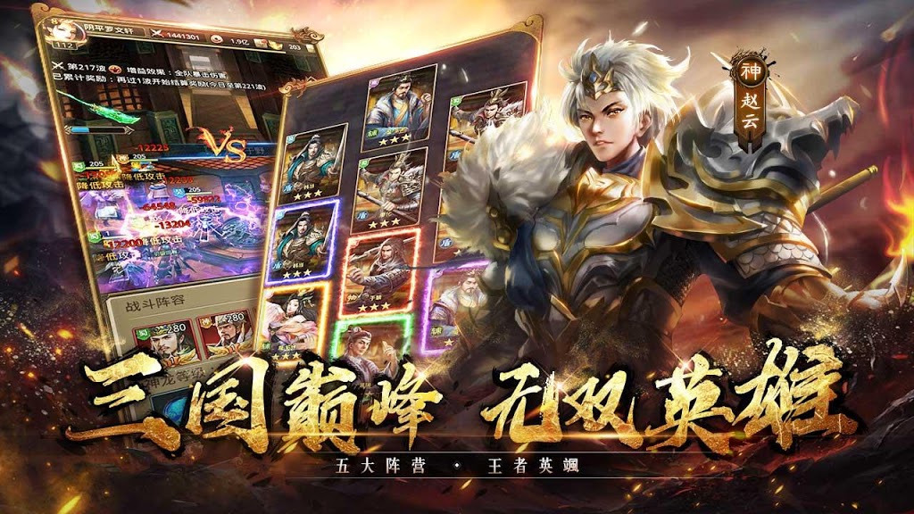 真三国英雄传台服;轻策略对战,自由点将阵容制霸,搭配放置玩法,养肝不伤胃,神将爆不停!五大阵营,神魔势力巅峰对决!神兵培养,青龙偃月刀轻松制霸战场!只需3分钟,你将平定天下!游戏首创神、魔、魏、蜀、吴五大阵营,龙争虎斗阵营厮杀,尔虞我诈争夺天下!,在最动乱的时代,无双英雄角力奋起;在最华丽的舞台,巅峰战斗辉煌上演!