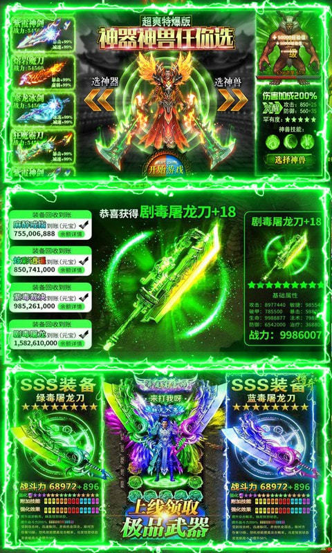 所有装备全部回收,钻石元宝拿不停!独有寄售系统,自由交易爽翻天!