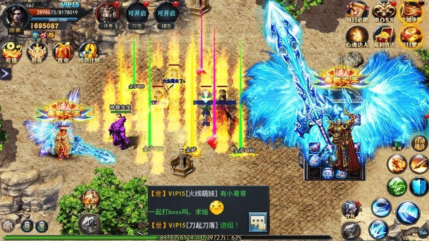 经典传奇画面,热血依旧,玩法更丰富,各种技能释放轻松斩杀野怪。