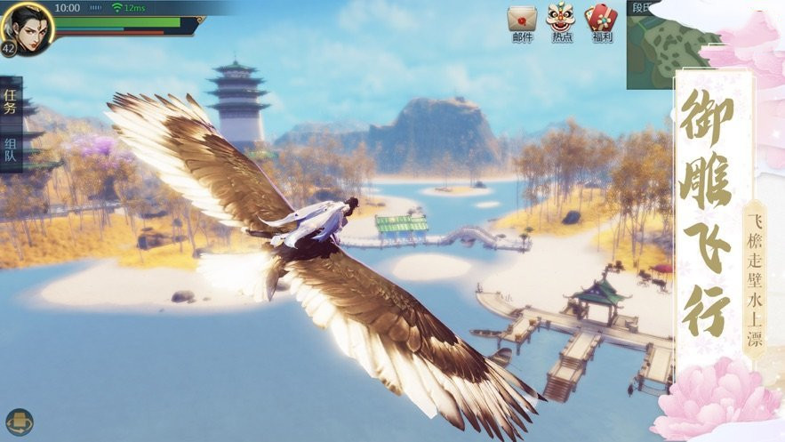 光彩夺目的遨游仙侠情景,真正细致的3d贴图,及其超清真实的人物建模。