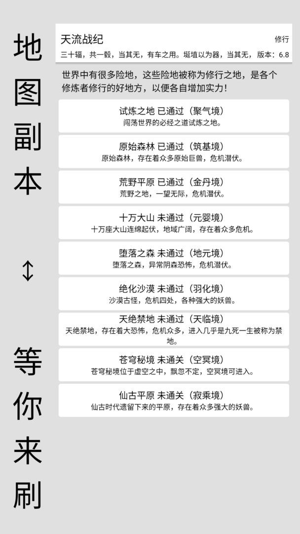 天流战纪游戏是款文字修仙挂机玩法的rpg手游,你将在游戏中看到简洁的画面,丰富的玩法等着你来亲身体验!完美的设定,炼制养成,在三界中逍遥修炼,锻造神器,提高自身修仙等级来获得畅快的体验!热血的厮杀,自由挂机战斗,闯荡刷副本,快速的飞升,从凡人渡劫成仙吧!
