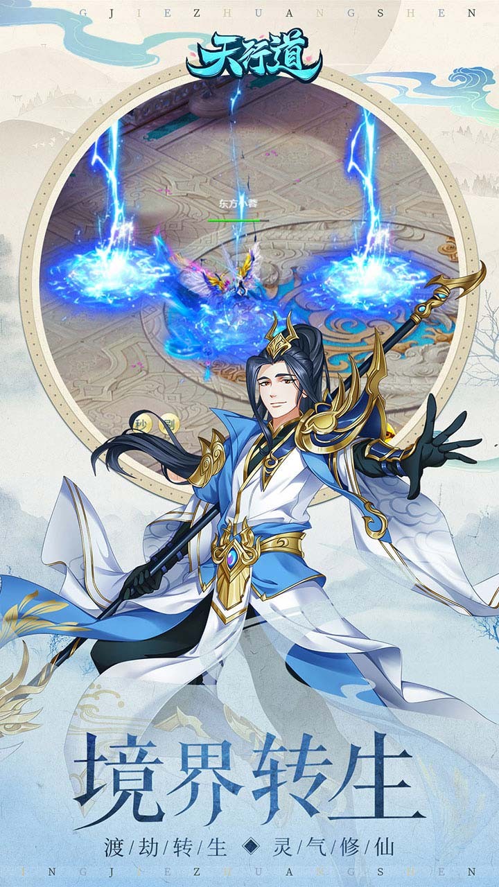 天行道是一款以打怪掉装、修真升级为特色,集合灵兽萌仙收集养成、神装神器铸造升级、渡劫转生、浪漫仙缘修炼等一系列丰富玩法的国风仙侠H5游戏。游戏场景仙气满满,角色造型在传统写实仙侠风格基础上融入二次元画风,画面活力感十足。