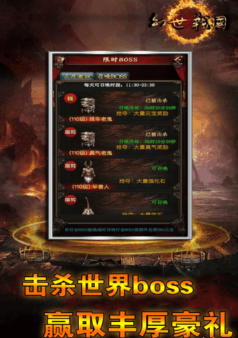幻世战国沙城争霸上线即是满V、玩家打BOSS不氪金也能当上大佬!所有装备可回收兑换元宝,强力切割!英雄暴击!所有神装均靠打!稀有极品装备狂爆!散人天堂!只要努力所有极品都尽收眼底。