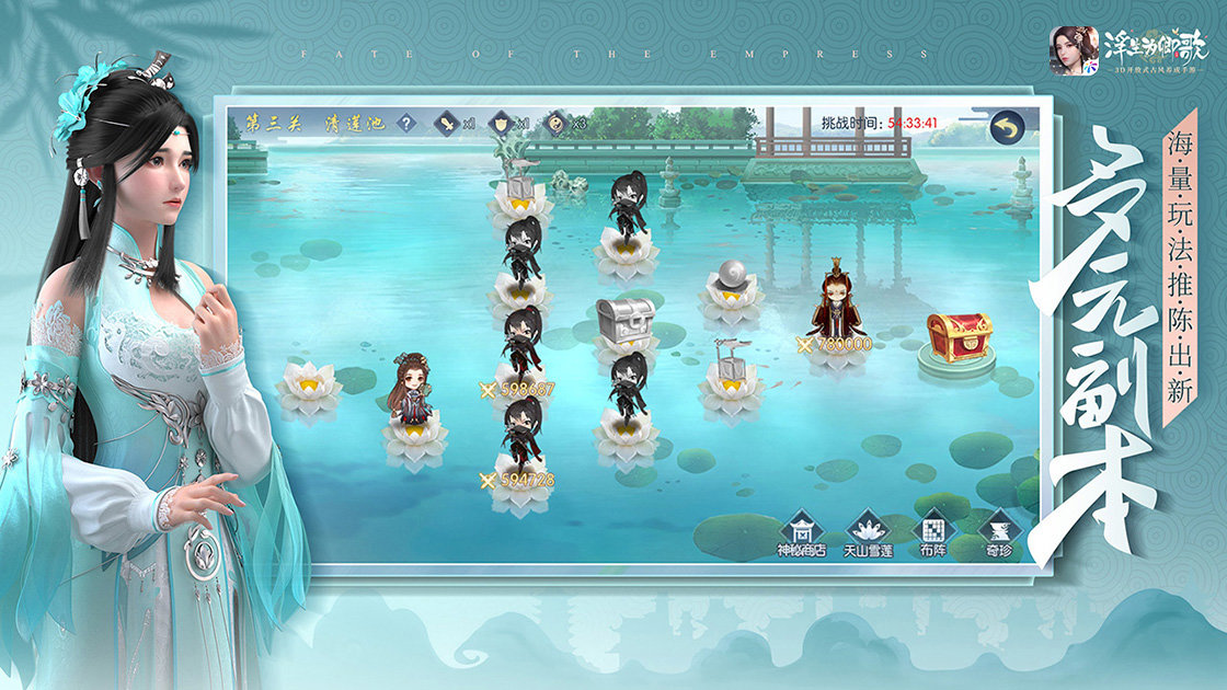 游戏中可以感受到诗情画意的历史场景,精细打磨的卡牌英雄自由召唤,开放式养成佩戴折扇、挂饰都能增加人物属性。