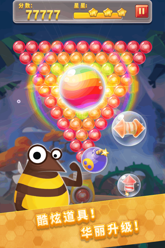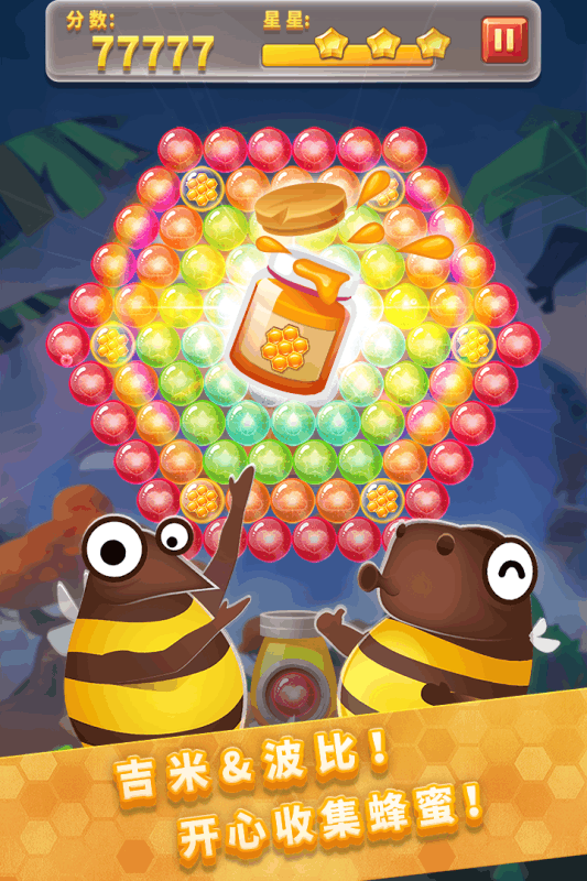 追随萌呆蜜蜂杰米和芭比去丛林收集纯蜂蜜。游戏全过程中泡沫运动轨迹可灵便操纵,