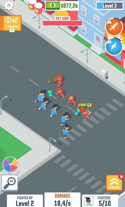 升级您的战士让他们变得更强大,升级建筑物以赚取更多金钱并致富!