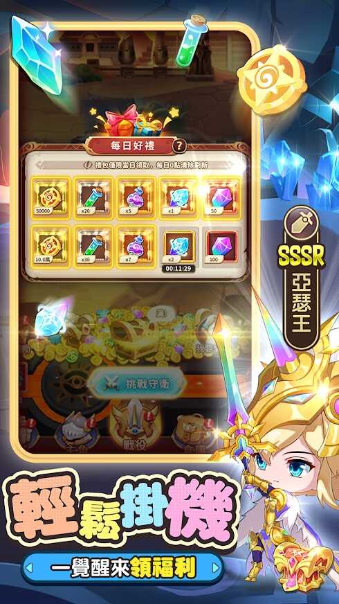 这是一款轻松放置卡牌手游,英雄,也可以这麽可爱,一键放置领福利,召唤SSSR顶级卡牌,与性转少女拯救世界! 用爱培养本命英魂,在手游冒险飙战力!