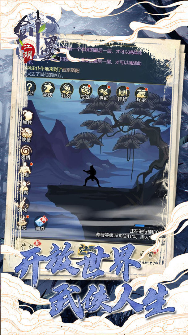 剑墨江湖内购破解版是一款国风文字武侠放置挂机玩法的rpg手游,开服奖励超多!在开放式的世界给予你全新的武侠人生!真实江湖,自由修炼,成为一名大侠,学习武学秘籍,任意的搭配武功,前往战斗中释放技能,享受快意的修仙体验!丰富的门派,拜入师门,结识更多的师兄弟们,展开交互,跟随着剧情解锁更多玩法吧!