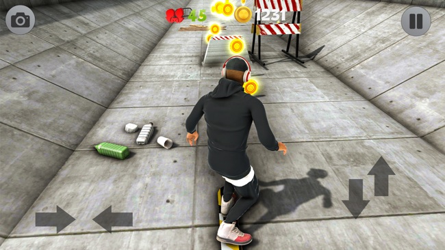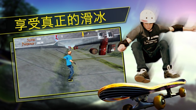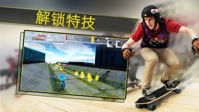 1、超赞的画面风格把你完全带入到滑板运动之中。全新的目标积分玩法!无尽关卡设计。