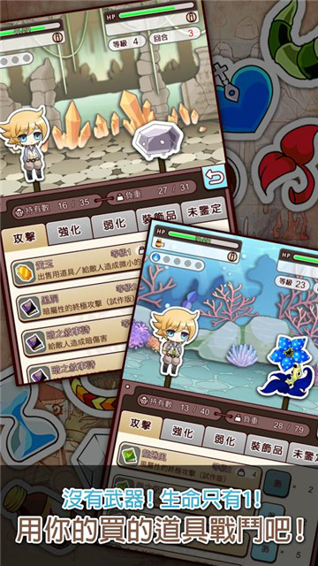 1.这款游戏的战斗只用道具,扔道具攻击敌人,以此来对敌人造成伤害。