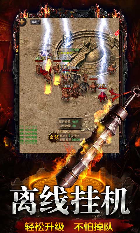 3、轻松挂机玩法,跑图,砍怪,打BOSS都不需要自己动手,你只要享受激情的PK。