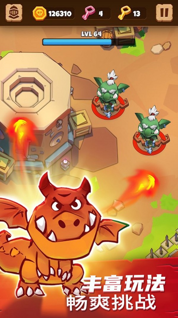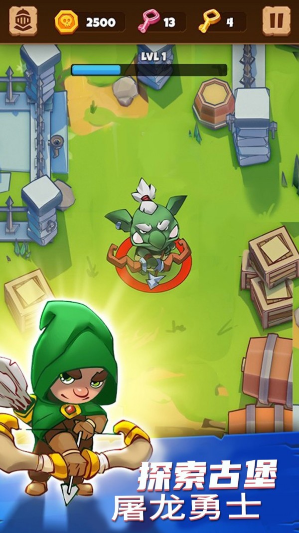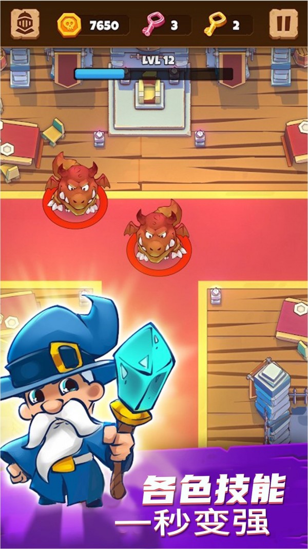 勇者大闯关是在广阔的幻想世界中闯关探险的动作游戏。游戏中有各种各样的技能和召唤物,搭配掉落的法杖、指环等装备打败城堡中的怪物,拯救被俘的人们!