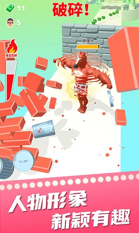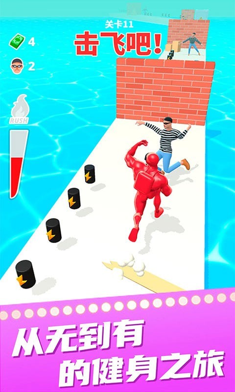 胖子冲冲冲是一款让许许多多的玩家都可以得到极致快感的游戏。在健身的旅途中,你将遭遇不同的打击,通过坚持不懈的努力,加上道具提供的力量加持,可以让你成为一个无敌的健美达人,当然在赛道之中你需要避开陷阱与障碍,否则你辛苦积累的肌肉能量与道具会被消耗殆尽。