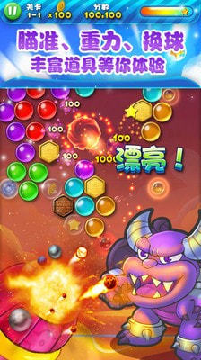 虽然我只有13MB的容量,但却有着丰富的内容,在传统的泡泡龙基础上优化了各种玩法,将反射、折线、炮击等融入游戏,休闲的同时增加动感。除了休闲的玩法,游戏还提供Boss大战,更具挑战性,看你敢不敢;