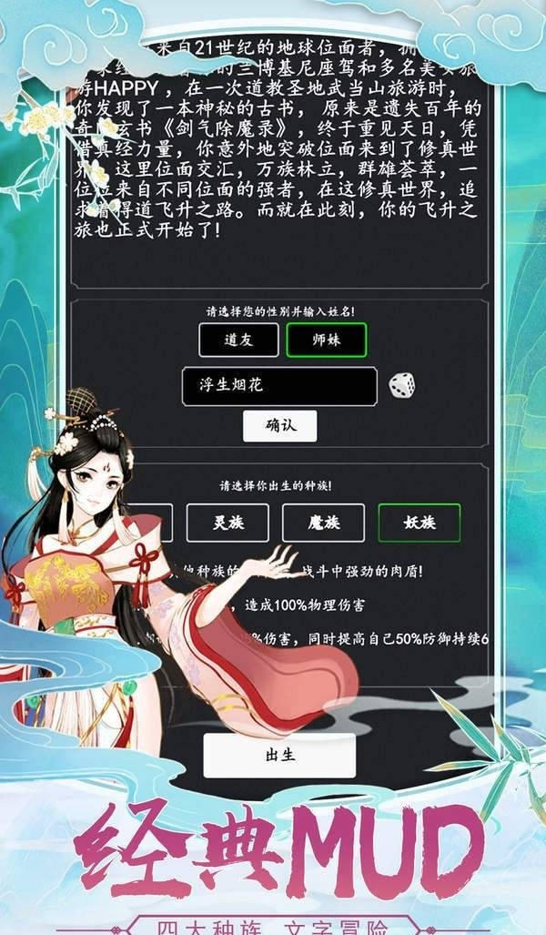创建一个自己喜欢的角色开始修仙吧每个种族修成正果都是独特的存在。