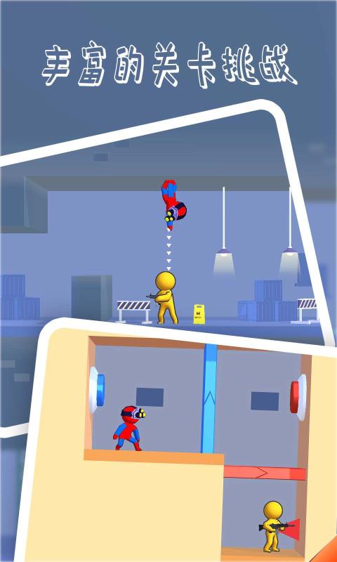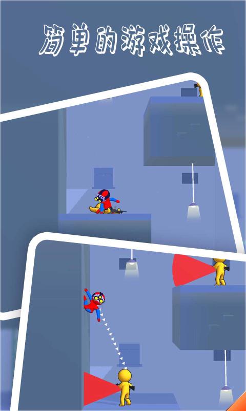 魔性十足的玩法,让大家化身为蜘蛛侠,简单的游戏操作,游戏中还有许多的任务,让游戏的玩法变得十分多样有趣,采用横版闯关的画面场景,让你亲身体验枪战的快感,在游戏里面使用蜘蛛网攀爬,穿越障碍,并且想办法杀死敌人,完成任务闯关,解救城市居民。