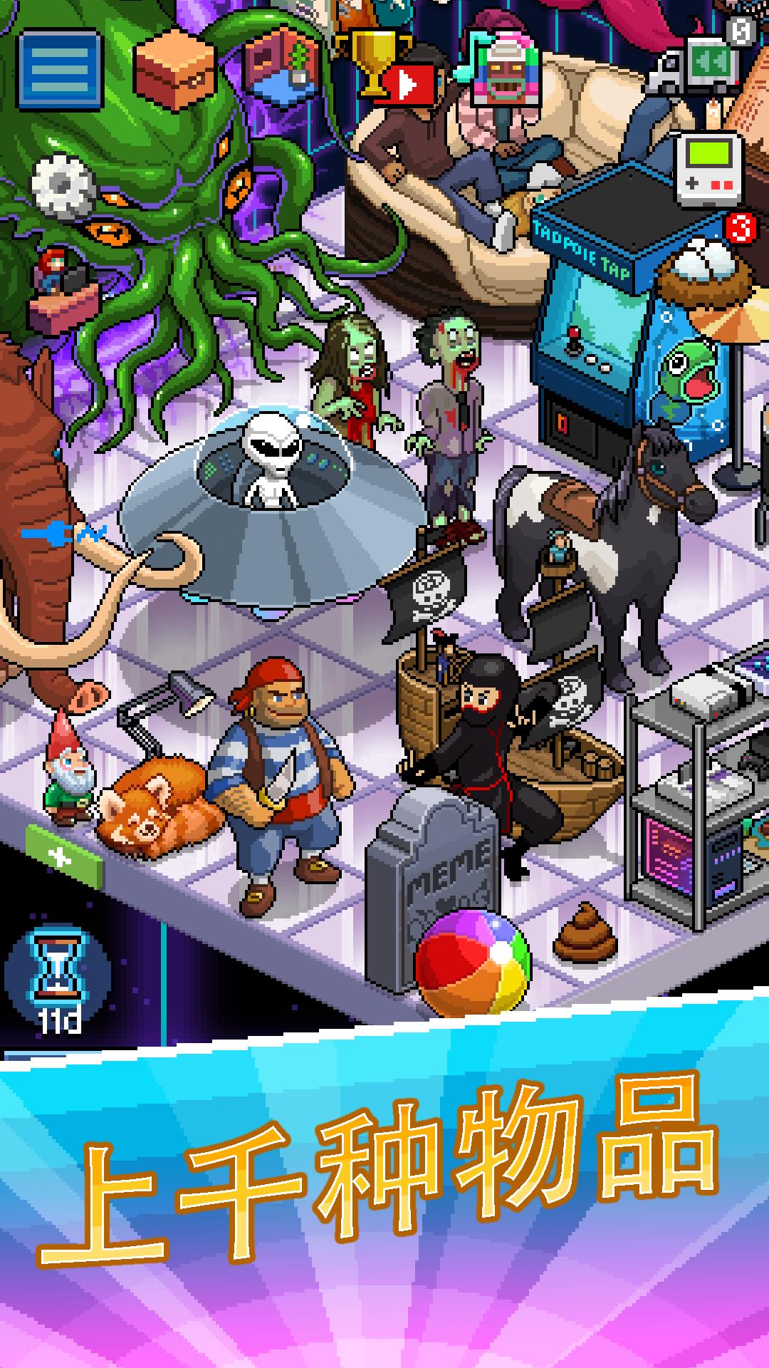 2、获得的钱能够 增添各种各样酷炫机器设备、家具、衣服裤子、乃至小宠物。