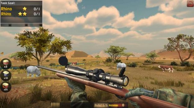 2、拿出你的猎枪准备在这个野外世界狩猎,去干掉那些野生动物。在游戏中不断的寻找动物。