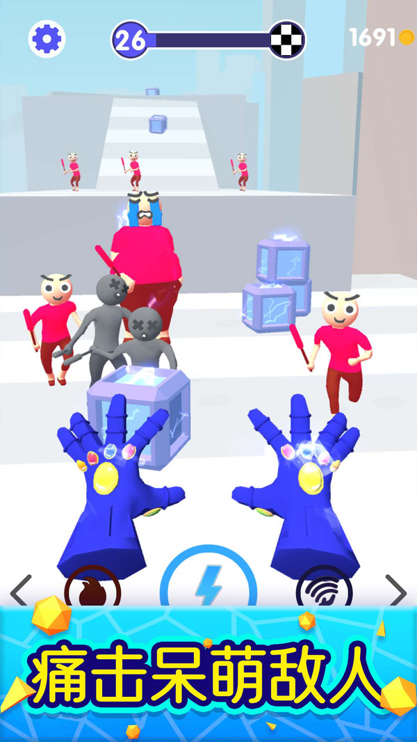 1、玩家需要控制双手来完成闯关的任务,依靠你的个人操作能够消灭对手;