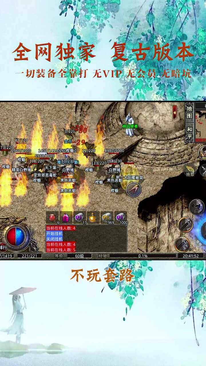 2、最新轻变热血传奇带给你满满的游戏体验感,万人在线打怪作战,霸气全开,带你重温古老的传奇神话;