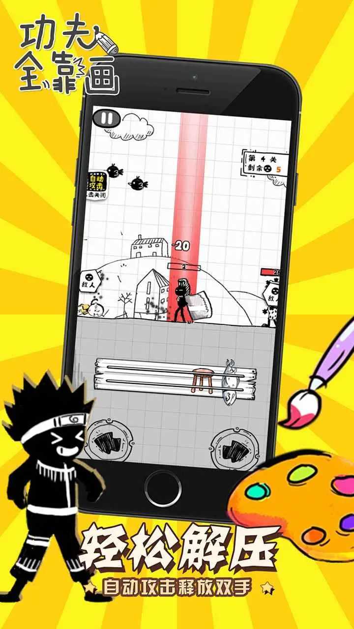 功夫全靠画是一款火柴人题材的冒险游戏,玩家需要通过画线的方式来引导火柴人进行战斗,不同的画线弧度,会让火柴人发挥出不一样的战斗技能,根据你的对手来布置战斗方式,轻松的闯关每一个关卡,击杀强大的boss。