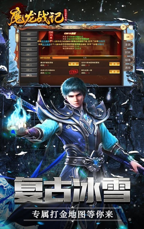 魔龙战记GM冰雪高爆版是一款多人角色扮演实时在线热血竞技类型游戏专属升级礼包送不停,更有高爆版本上线,人气火爆大区等你来加入,多种升级礼包送不停。