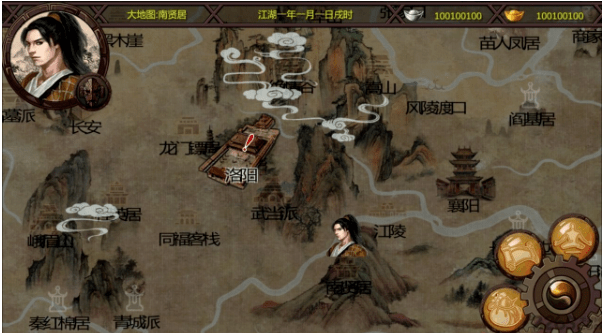 【时间轴】游戏左下有日期,每过1年NPC的战斗力都会上升。每次在大地图的小图标上停留一秒都会显示出到达所花费的时间(至少1天),在同一个地点不同场景之间移动消耗半个时辰,战斗两回合花费一个时辰。