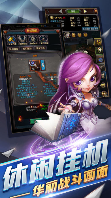1、不再是文字mud式的战斗,炫目的战斗特效、华丽的装备外观、数以百计的怪物外形、全程人声语音,你确定这是一个挂机游戏;