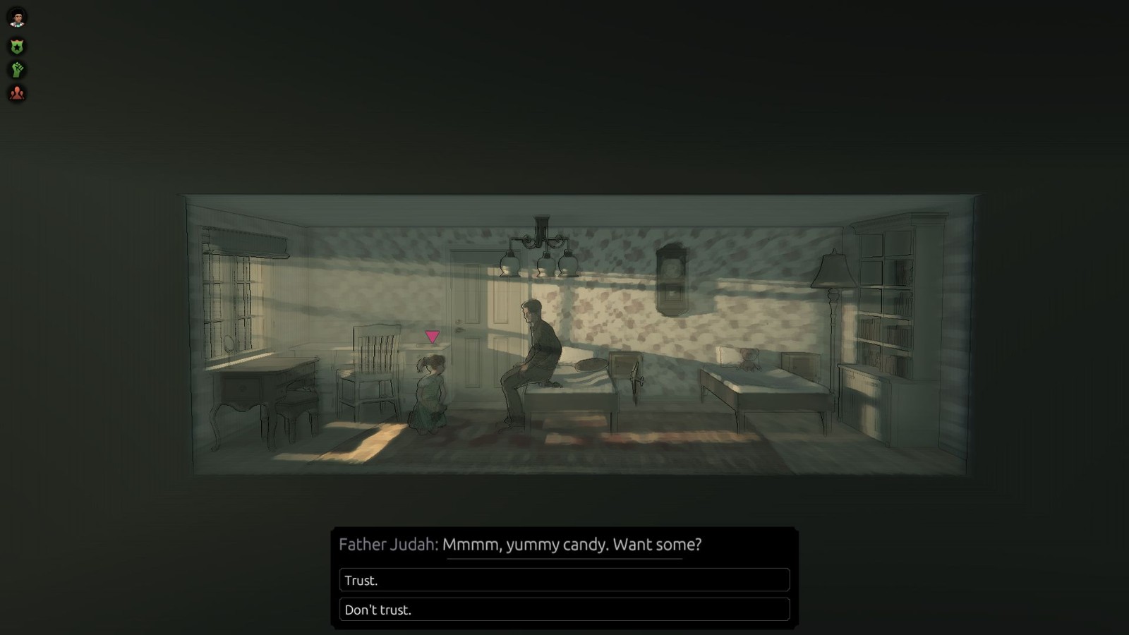 最好的月份游戏是一款点击冒险类型的叙事RPG,故事很温馨,讲述的是单亲妈妈带着儿子开始一次伟大的情感旅程,在途中你会遇见各种各样的事情,并且经历各种考验,从而领悟亲情的重要性,找到自己的目标和价值观!游戏大量采用暖色调和温馨的场面,让这款游戏变得更加的有温度!