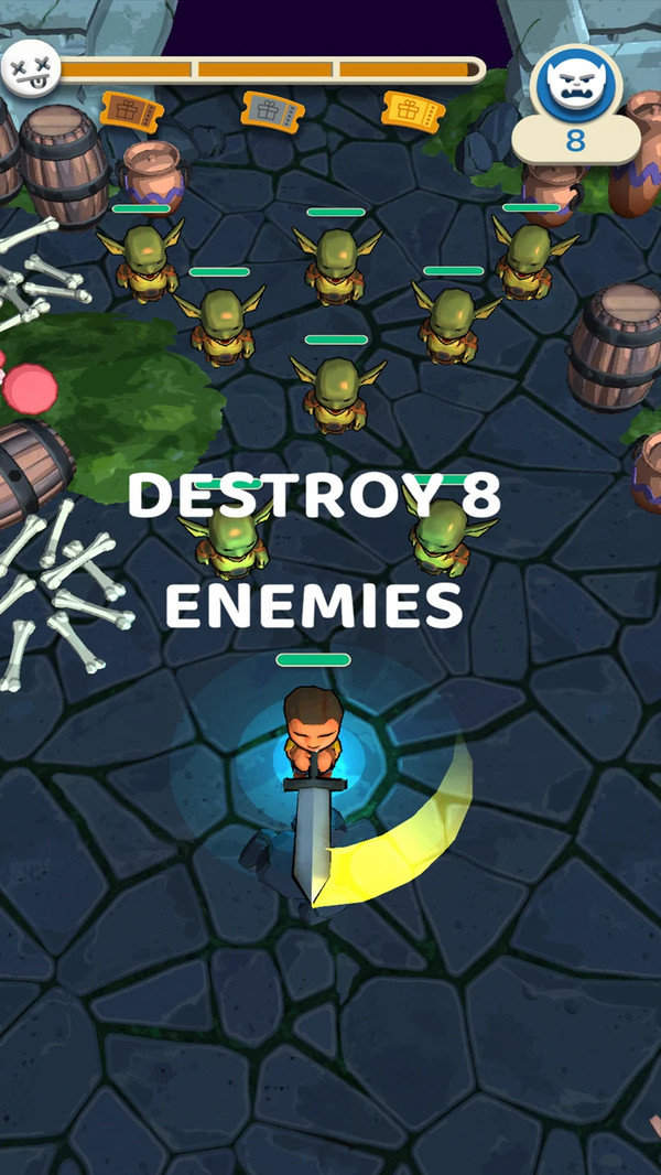 四种独特的敌人类型,伤害和击退升级,奖励门票和金币!