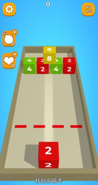选择你想要的方向点击屏幕发射数字方块,当同个数字的方块碰撞时将会合并并且数字相加,利用这个方法凑出2048吧。