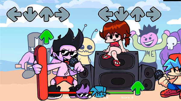 周五夜放克正版又名黑色星期五之夜,是一款在各大平台都很火爆的休闲小游戏。玩家在游戏中可以控制自己的角色去演奏歌曲,谁获取的积分更多就能赢得游戏的胜利,喜欢的朋友就来下载吧~