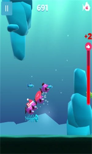 这款小游戏遵循大鱼吃小鱼的规则,玩法非常的简单,努力吃掉更多比自己体型小的鱼,还要小心人类的渔网,注意隐藏自己不要被发现了。玩法非常的简单,所有年龄段的玩家都适合,赶快下载游戏试试吧!