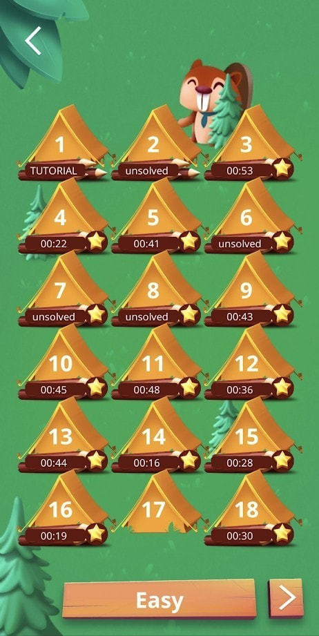 游戏很有趣,玩法很简单,风格新颖而简洁。真正的帐篷和树难题是经典的逻辑难题;