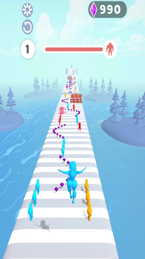 1、选择各种各样可爱的小人物奔跑在充满各种各样障碍物体的赛道;