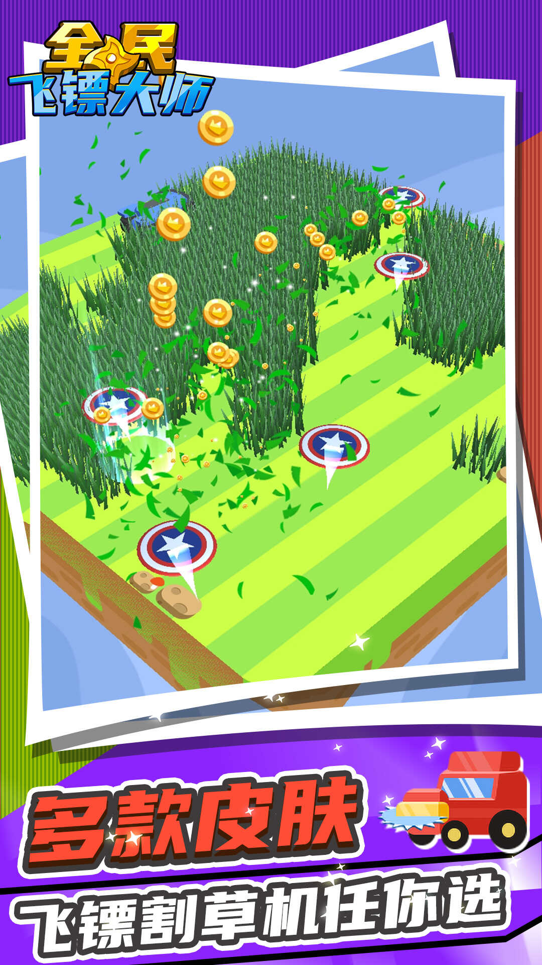 全民飞镖大师游戏是一款趣味十足的休闲益智类游戏,这款游戏的玩法非常的有趣,游戏中玩家通过丢飞镖的方式进行割草任务,丢出飞镖将这块地里的杂草全部清理干净就可以过关了,游戏中还可以使用道具帮助你的过关,这里还有超多的武器皮肤等你来解锁哦。