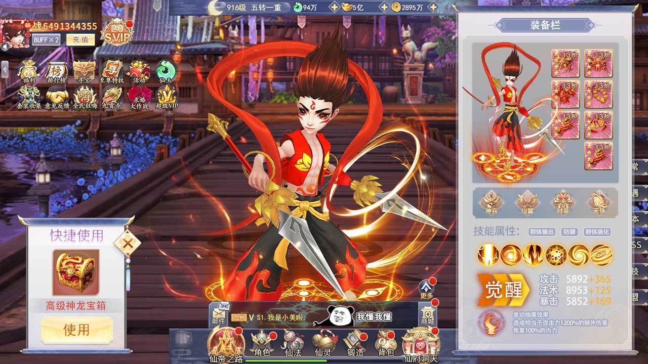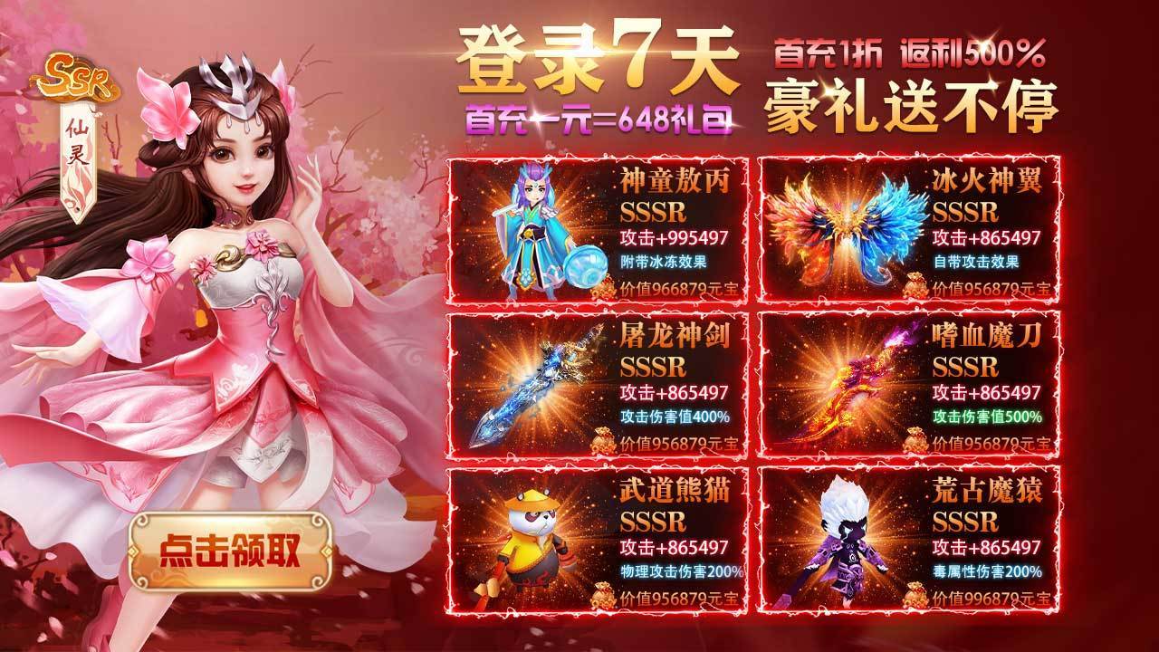 不断强化提升自己的技能战力数值,锻炼各种神器装备,行走仙界更轻松;