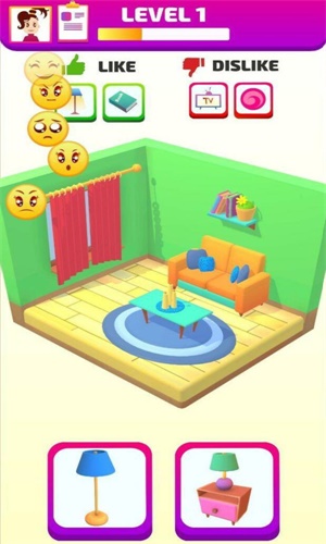 设计师很强是一款休闲益智类手机游戏游戏的画风简约大方,探索您的客户的愿望以做出正确的选择,选择并移动家具以布置房间,快来试试吧。