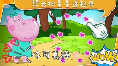 1.通过动手依次将小星星连起来,把宝宝河马和它的朋友们找出来来,快让小星星手拉手吧。