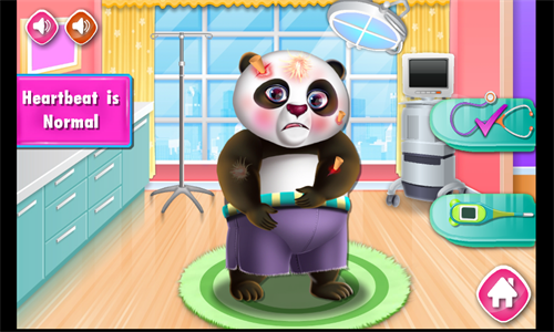 游戏操作非常的简单,根据提示一步一步操作,根据小熊猫的情况来判断,为它做身体检查,为它完成一系列的治疗,帮助它快速消除痛苦,休闲解压的游戏模式,小伙伴们赶快来下载游戏一起体验吧!