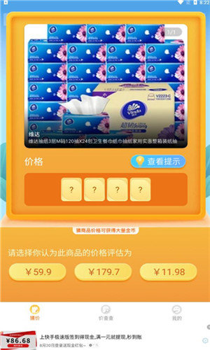 推荐一款好玩的游戏,就是价格猜猜猜,本地人打开就有红包。